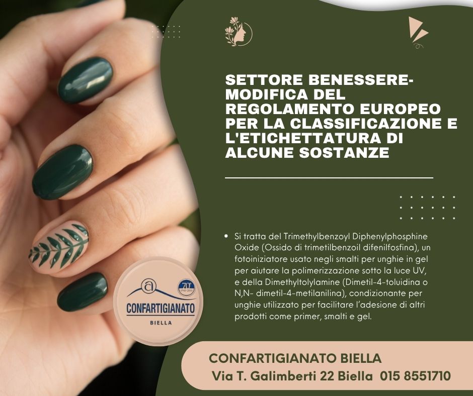 ๐๐๐๐๐๐๐๐๐- ๐๐๐๐๐ ๐๐๐ ๐๐๐ ๐๐๐๐๐๐๐๐๐๐๐ ๐๐๐๐๐๐๐ ๐๐๐ ๐๐ ๐๐๐๐๐๐๐ ๐๐๐๐๐๐๐๐ ๐ ๐’๐๐๐๐๐๐๐๐๐๐๐๐๐ ๐๐ ๐๐๐๐๐๐ ๐๐๐๐๐๐๐๐ Il Regolamento (UE) 2024/197, pubblicato in GUUE il 5 gennaio 2024, ha modificato lโallegato VI al Regolamento 1272/2008 (CLP) per quanto riguarda la classificazione e lโetichettatura armonizzate di determinate sostanze. Il nuovo Regolamento introduce e/o rettifica diverse voci presenti nellโallegato VI al CLP, molte delle quali sono classificazioni di tipo CMR (๐๐๐ง๐๐๐ซ๐จ๐ ๐๐ง๐จ-๐; ๐ฆ๐ฎ๐ญ๐๐ ๐๐ง๐จ-๐; ๐ซ๐๐ฉ๐ซ๐จ๐ญ๐จ๐ฌ๐ฌ๐ข๐๐จ-๐). Dal 1ยฐ settembre 2025, non sarร piรน possibile utilizzare o vendere prodotti contenenti alcune sostanze specifiche, come il ๐ป๐๐๐๐๐๐๐๐๐๐๐๐๐๐๐ ๐ซ๐๐๐๐๐๐๐๐๐๐๐๐๐๐๐๐ ๐ถ๐๐๐ ๐ ๐ ๐๐ ๐ซ๐๐๐๐๐๐๐๐๐๐๐๐๐๐๐๐๐, che sono classificate come Repr. Cat 1B. Questi composti sono usati nei trattamenti nail, come gli smalti gel e i condizionanti per unghie. Il motivo di questa restrizione รจ legato alla tutela della salute e del benessere delle clienti, poichรฉ queste sostanze sono considerate potenzialmente dannose. Tutti, inclusi i ๐ฌ๐๐ฅ๐จ๐ง๐ข, ๐ข ๐ซ๐ข๐ฏ๐๐ง๐๐ข๐ญ๐จ๐ซ๐ข ๐ ๐ ๐ฅ๐ข ๐จ๐ฉ๐๐ซ๐๐ญ๐จ๐ซ๐ข ๐๐๐ฅ ๐ฌ๐๐ญ๐ญ๐จ๐ซ๐, devono rispettare questa data e smaltire o ritirare i prodotti non conformi giร in loro possesso. ร importante sottolineare che non si puรฒ piรน usare nulla di non conforme, e anche i clienti finali devono essere informati di questa novitร . Se hai dei prodotti non conformi, la cosa migliore รจ concordare con il fornitore come smaltirli in modo sicuro, perchรฉ la normativa non specifica se bisogna restituirli o smaltirli autonomamente. Per informazioni contattaci allo 015 8551710